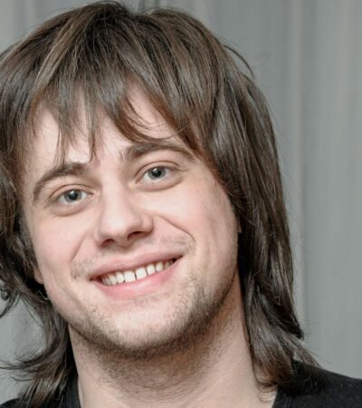 A person wearing a high-visibility jacket with the word 'Security' is standing near a wooden wall adorned with festive decorations, including lights and garlands. The scene is dimly lit, creating a warm, cozy atmosphere.